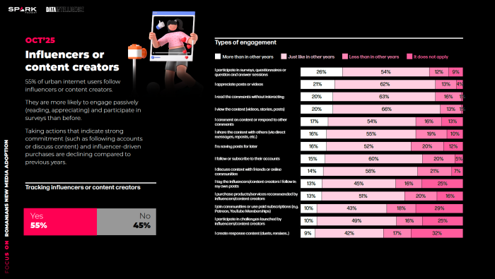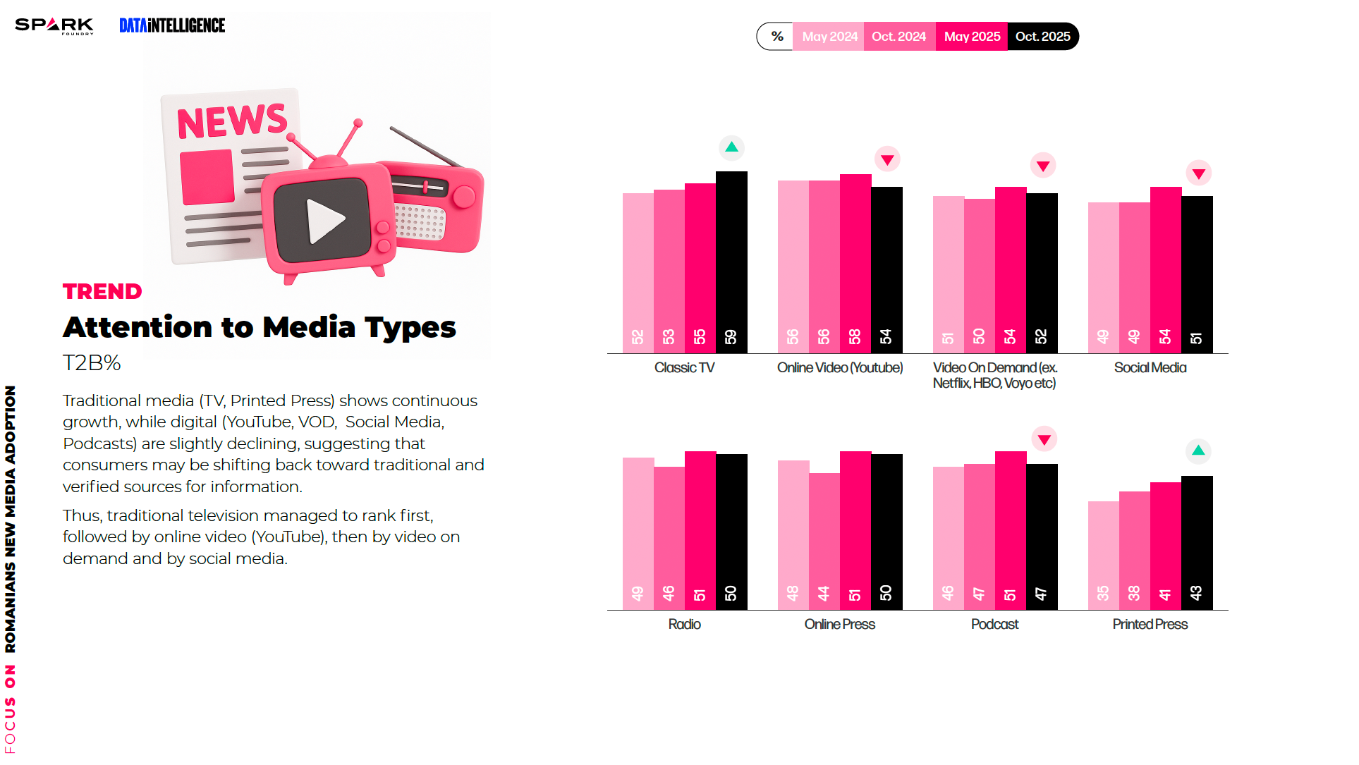 In addition, while the adoption of artificial intelligence continues to increase, users are becoming more selective and more cautious toward automatically generated content, reflecting a maturing digital behavior.” stated Mădălina Bâdea, Head of Data Insights, Spark Foundry.